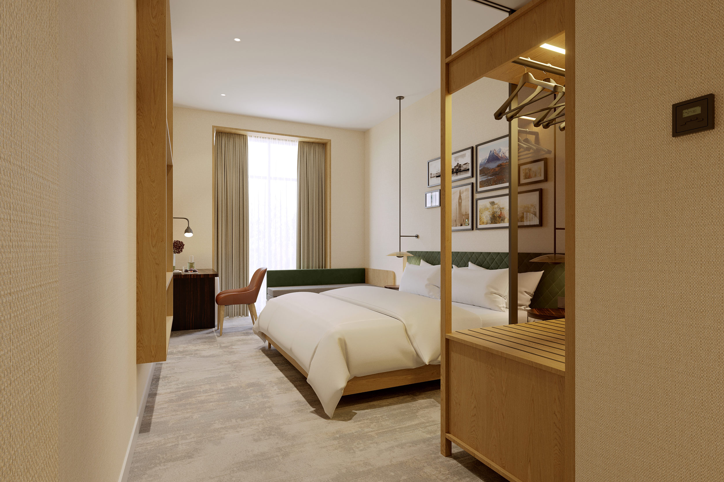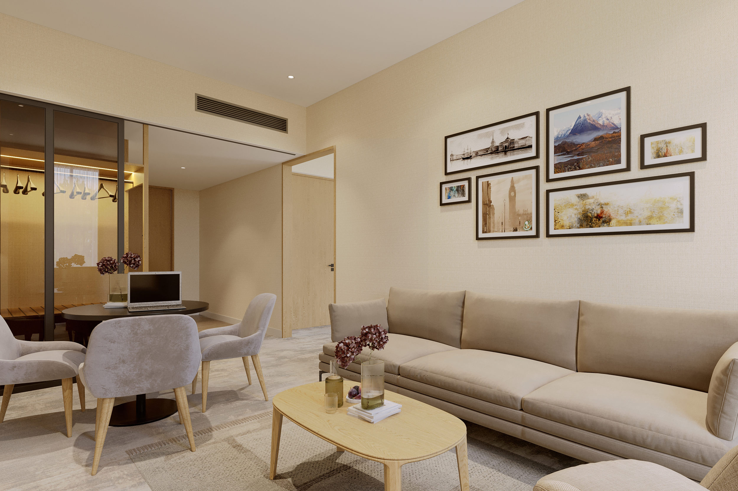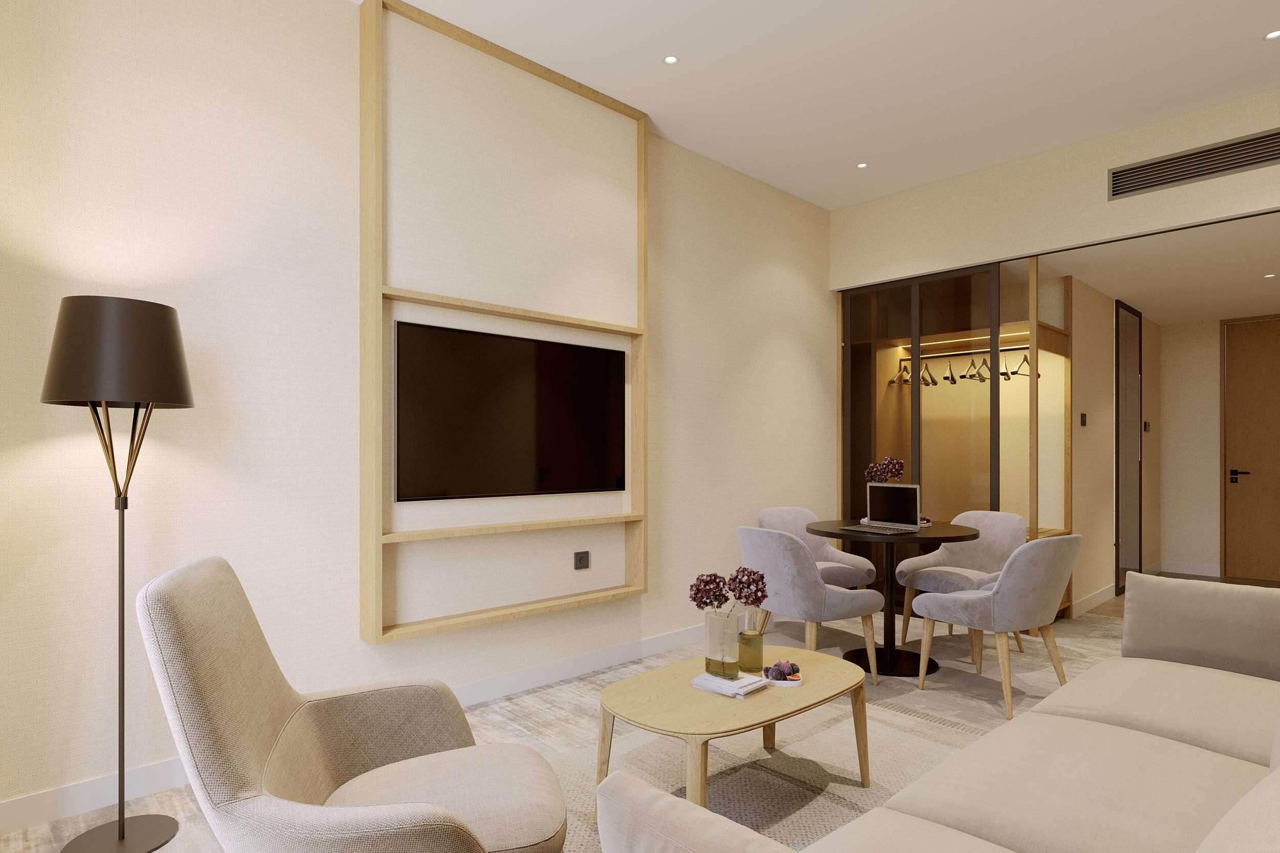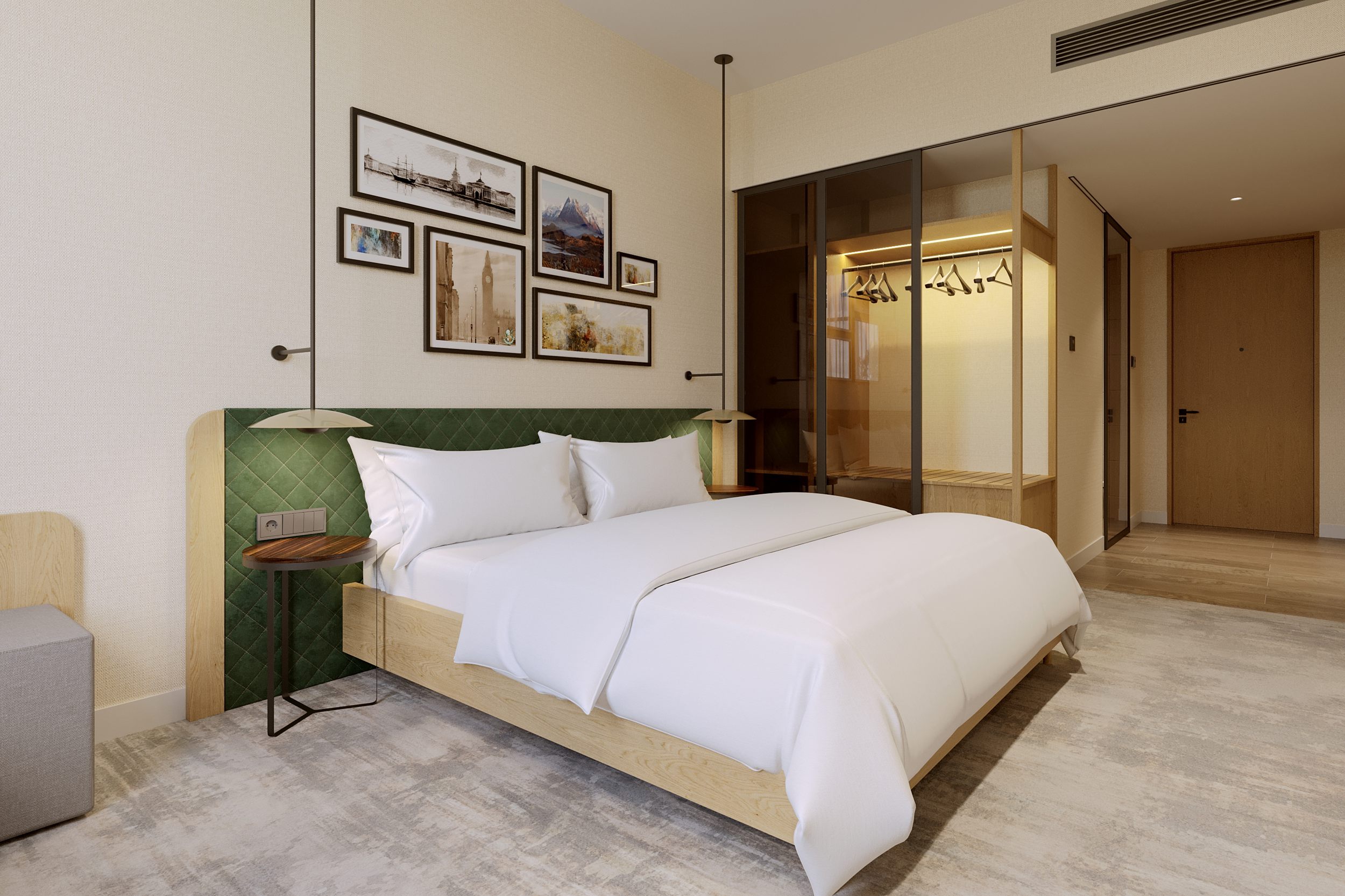 The project respects Termiz's historic spirit and regional climate. The interior features minimalist shapes, a warm color palette, and natural lighting to create a peaceful atmosphere. Furnishings and finishes are made from eco-friendly and durable materials.