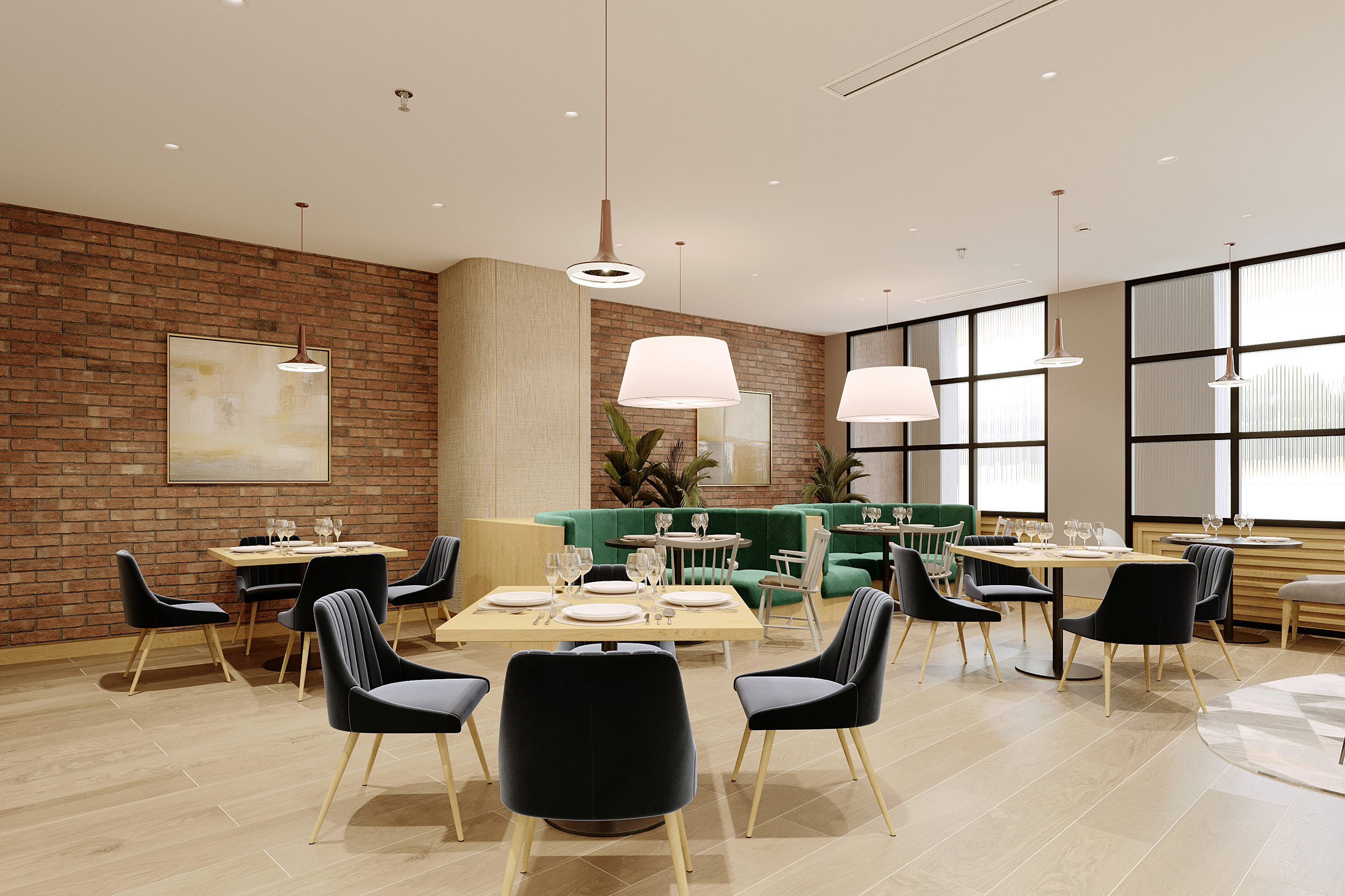Reception and Lobby Area: Bright open space for welcoming, waiting, and socializing