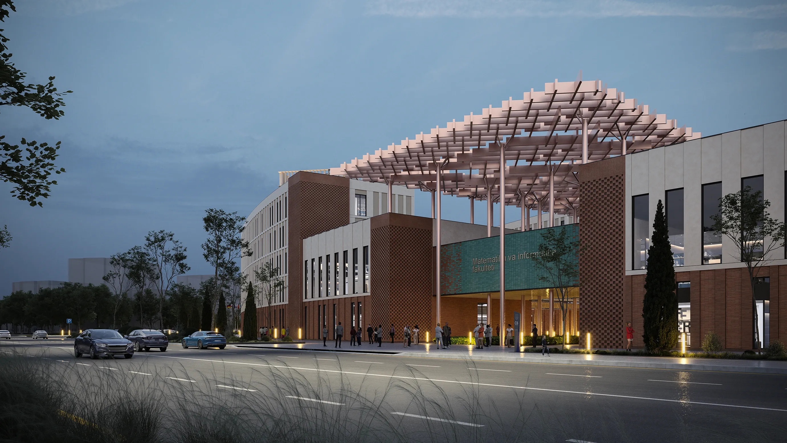 Концептуальный кампус в Ургенче, вдохновлённый «Домом мудрости». 21,3 га объединяют образование, науку и общественные функции. Круговая концепция символизирует единство и непрерывность знаний.